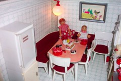 Die Möbel sind alle von der Firma Crailshiemer. Leider haben die etwas gelitten im Laufe der Jahre, aber es ist noch alles komplett.