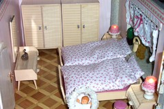 Die Bauteile und Möbel sind noch Original. Die Fensterleisten wurden damals alle von Hand gesägt. Es gab noch keine kleinen Leisten und mein Vater hat alles von Hand gesägt, er besaß keinerlei elektrisches Werkzeug.